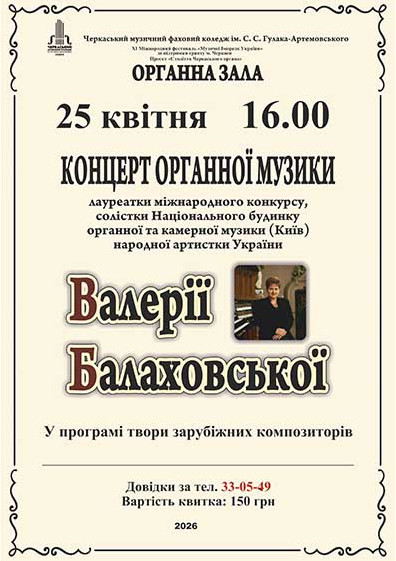 Концерт органної музики Валерії Балаховської